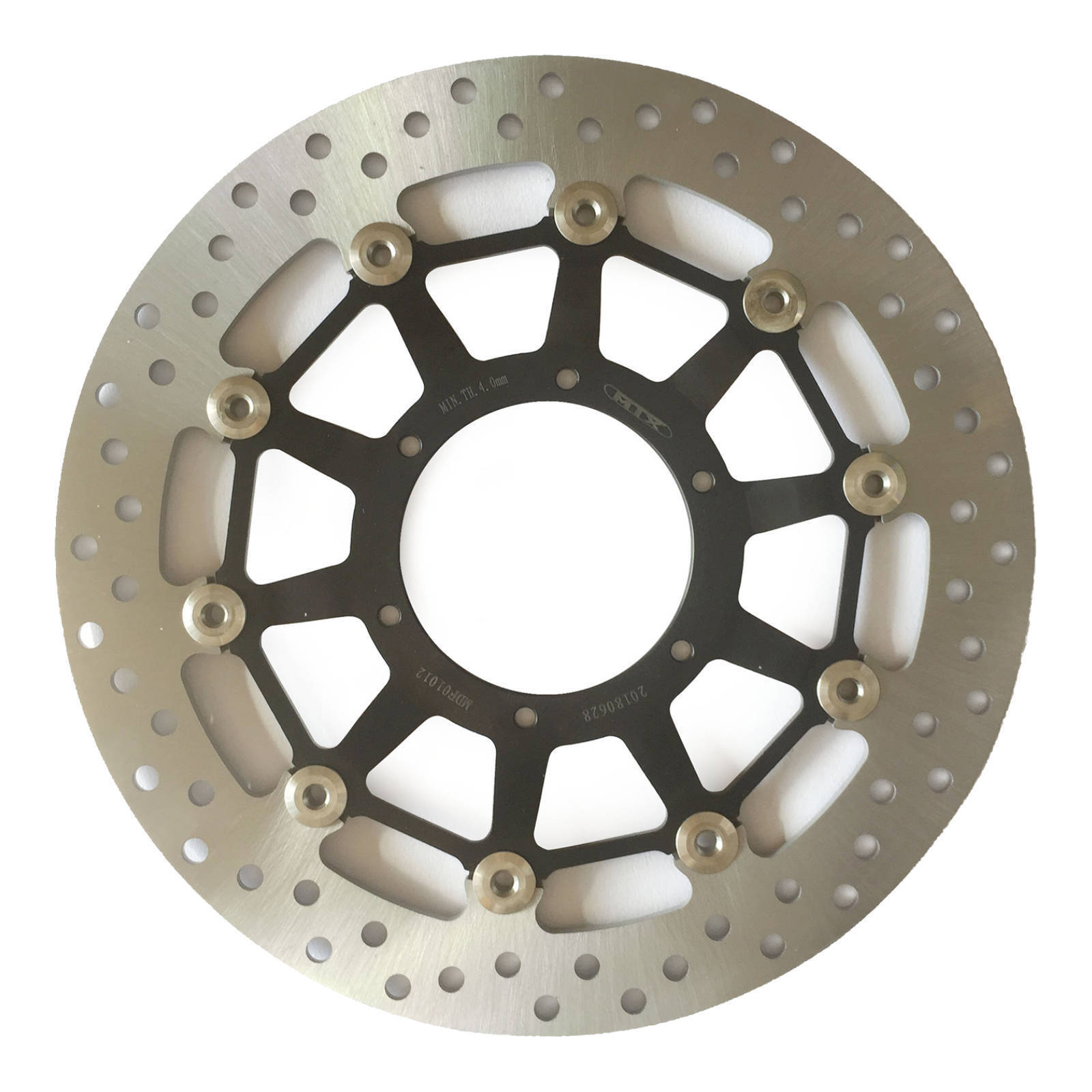 MTX floating discs are made from two segments of stainless steel which are riveted together to allow the outer section of stainless steel to expand under extreme temperatures. The outer section is manufactured from Japanese SUS 420 stainless steel then heat-treated to HRC 36+-2 while the centre of the disc is manufactured from steel or alloy. An alternative to large original discs floating discs improve braking performance by ensuring the disc is always in perfect alignment with your pads for the perfect contact throughout all operating temperatures. Lightening and drill holes are designed to improve braking performance and reduce the disc temperature.