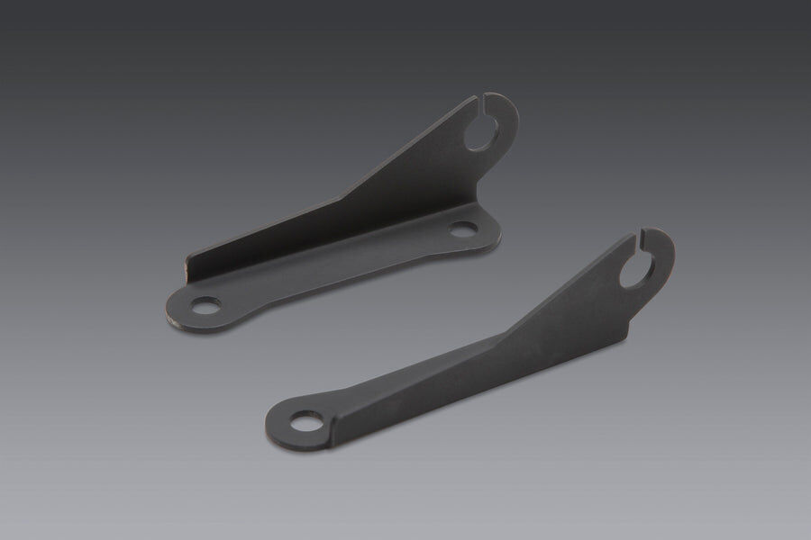 The perfect solution to mounting turn signals on bikes with a high mount exhaust and our Fender Eliminator. Used with our LED standard or sequential turn signals or other M8 / 5/16" mounted signals, these brackets place the lights at either the top or bottom corners of the license plate frame, keeping them out of the way of the hot exhaust gasses.