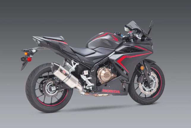 We enlisted the R-77 slip-on in Works Finish to gain max performance on the CBR. With some nice gains in horsepower and torque, the R-77 got the job done. Especially on the bottom end of the power spectrum where the 471cc twin could use it most! We were even able to save over 3 pounds with our R-77, carbon fiber sleeved version. When it comes to performance Yoshimura makes it happen!