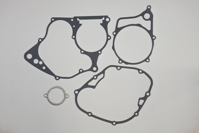 VintCo has all new engine gasket kits to help on your engine lower end rebuild. These gaskets are made with modern materials and manufacturing techniques to ensure an as good or better than OEM fitment and performance. The OEM part numbers are provided as a reference to ensure exact fitment. This 1980 Honda CR125 gasket kit includes the Crankcase gasket, left Crankcase cover gasket, right Crankcase gasket and exhaust gasket to complete your build with ease. A top-end gasket kit is also available separately (SKU KTE007) that has the critical top end gaskets to finish the job. These newly manufactured gaskets from VintCo will help you keep the ride going!