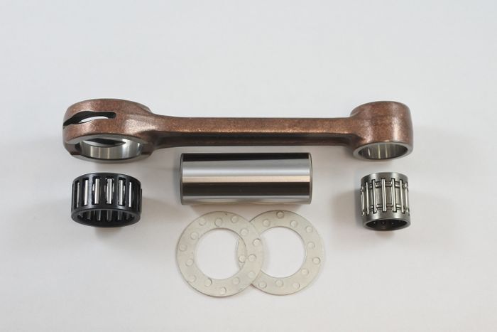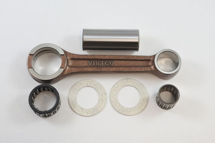 VintCo has all new Heavy Duty Connecting Rod kits for your vintage 1983-2001 Honda CR250 and Honda ATC250R 1985-86 that will get you back on track. These Connecting Rod kits will save you money over a new crankshaft. VintCo rod kits are manufactured with Heavy Duty Forged Steel and made with modern materials and manufacturing techniques to ensure an as good or better than OEM fitment and performance. Kit includes a rod, crank pin, big end bearing, wrist pin bearing, and two thrust washers. This newly manufactured connecting rod kit from VintCo will help you keep the ride going!