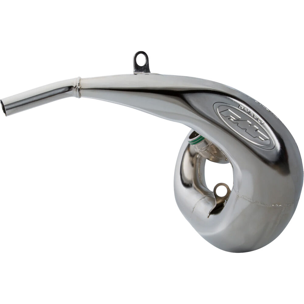 The FMF Gnarly pipe focuses on increasing the lower RPM horsepower and torque to get you out of the toughest terrain. When looking to add 4-stroke tractor like torque to your 2-stroke and you need a pipe to withstand the harsh elements, this is the pipe for you. Strong and rugged, this aggressive pipe dishes out handfuls of torque and bottom to mid range pull needed for late model 200cc through 500cc machines and the rigors of the off road domain.