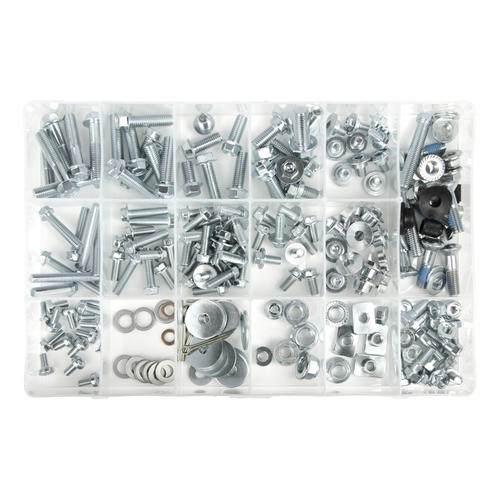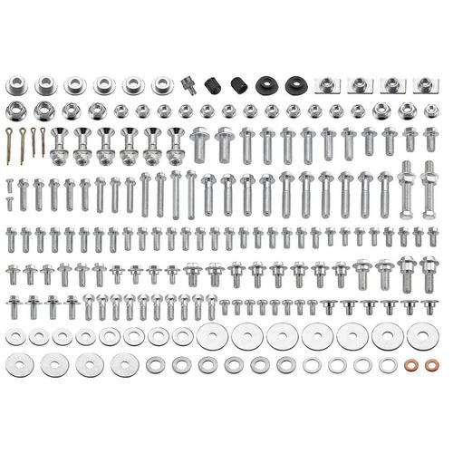 It is suitable for fastening most parts of your bike and includes an assortment of hex flange bolts, fender washers, OEM style bolts, nuts, and more.