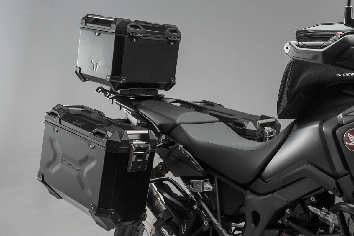 This set is the all-round, care-free pack for any tour. The water and dust-tight TRAX ADV premium aluminum case, two side cases and a top case offer your luggage the best protection. The bike-specific development of the detachable PRO side carrier and the ADVENTURE-RACK guarantee an optimal fit and secure grip for aluminium cases.