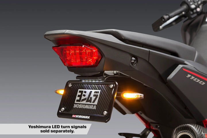 Model specific precision laser-cut stainless steel bracket tucks discreetly under the tail section of the motorcycle