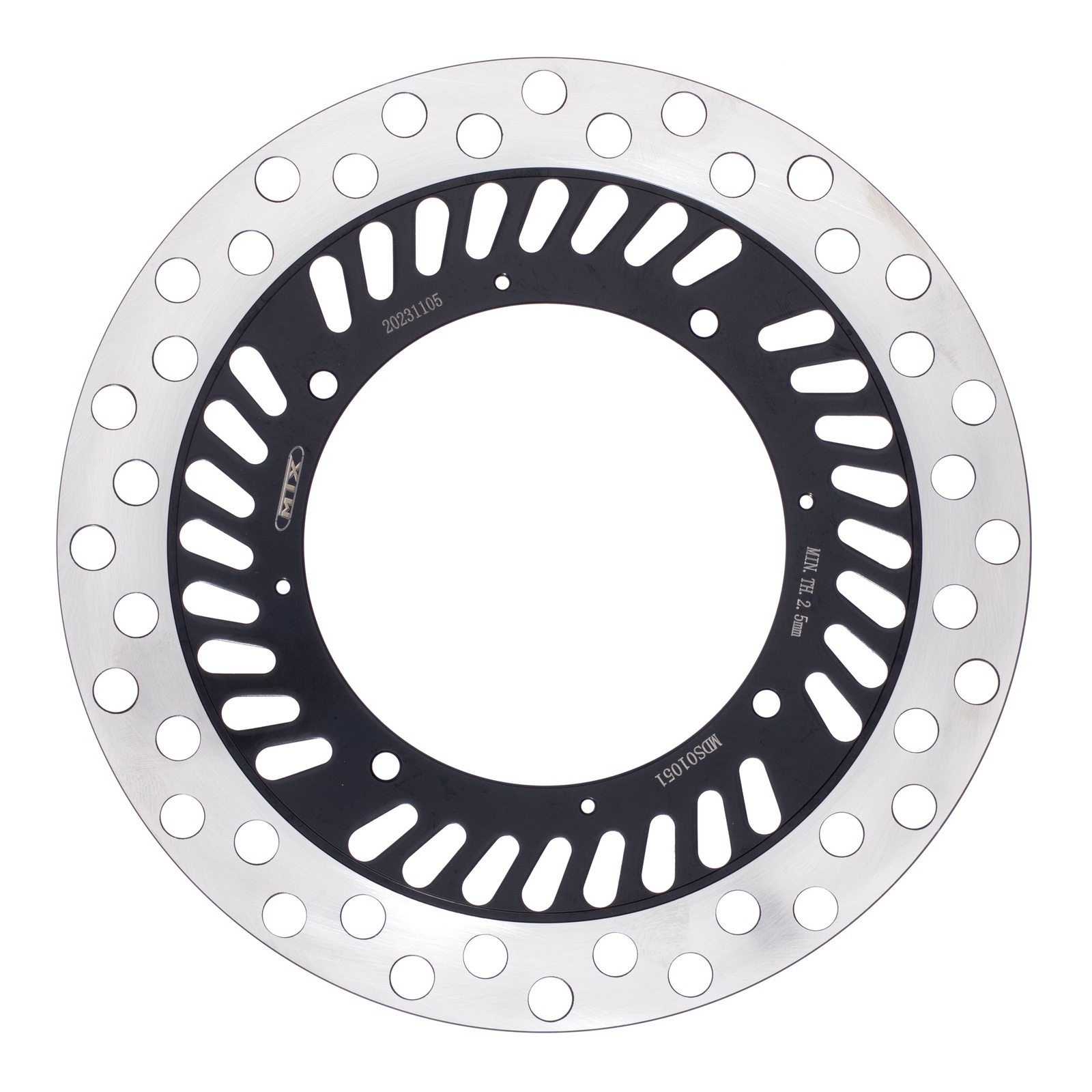 MTX solid discs are constructed using one complete segment of Japanese SUS 420 stainless steel then heat-treated to HRC 36+-2. Lightening and drill hole patterns are as per OEM designs to improve braking performance and reduce the temperature of the disc.