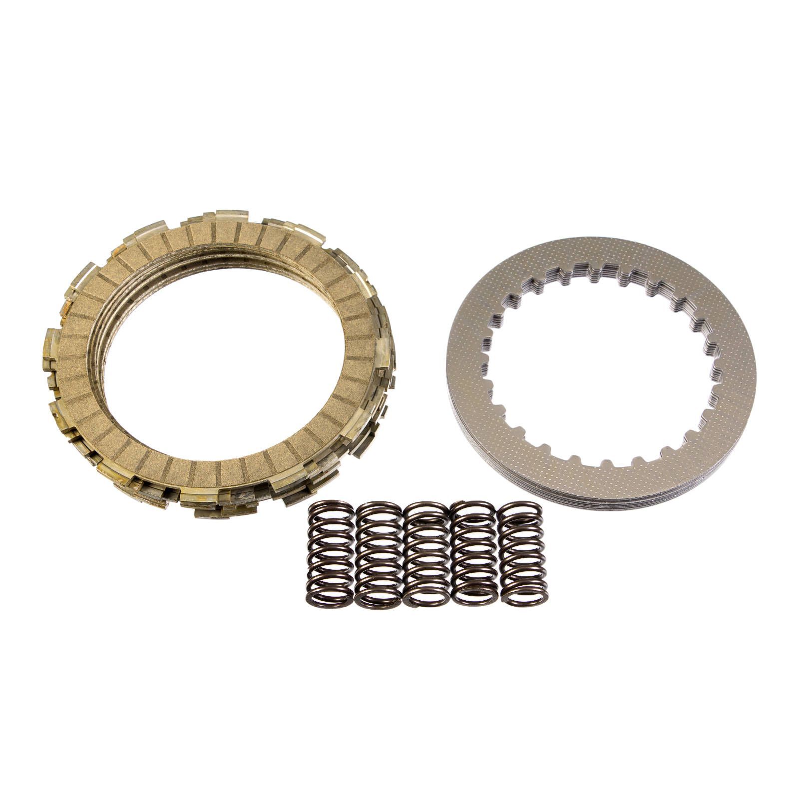 Whites Complete Clutch Kits contain a complete pack of friction, steel plates and a set of clutch springs for your motorcycle or ATV. The Whites Complete Clutch Kit is the easiest and best replacement for your clutch. The kit has complete compatibility with your OEM clutch components. Quality drive and friction plates are made with precision to ensure tight tolerances in the clutch basket and inner hub. Quality cork-based friction plates offer a great feel and strong engagement.
