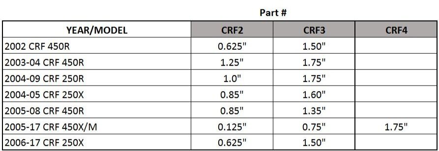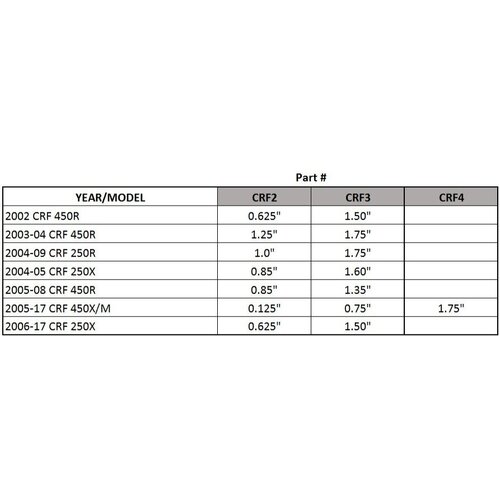 - Lowering amounts indicate REAR lowering, NOT overall bike height.