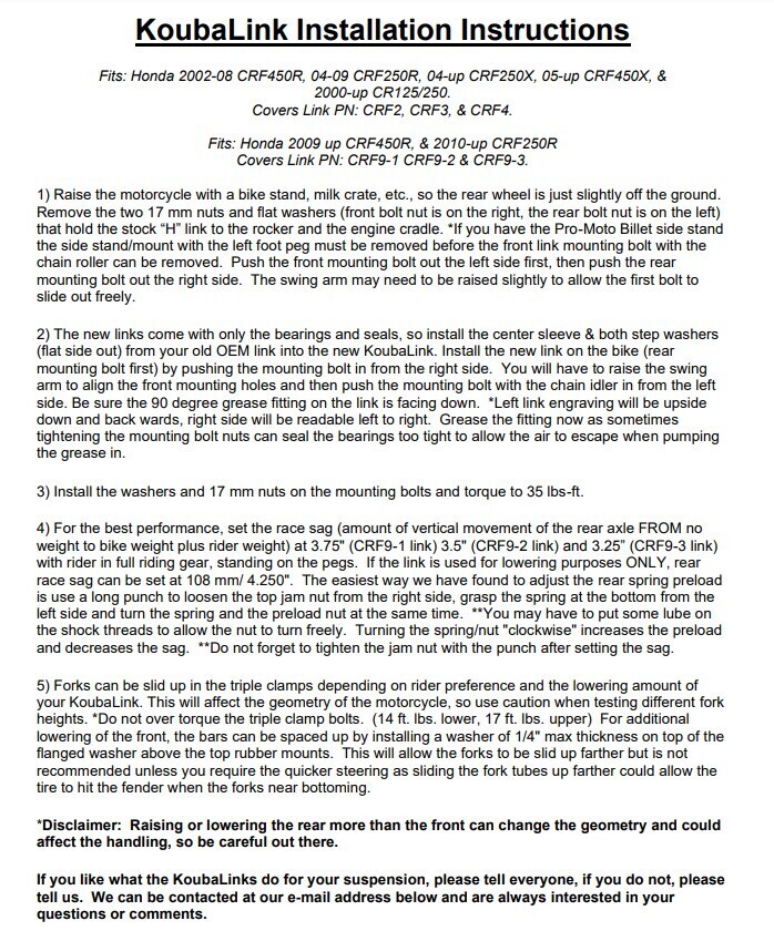 KoubaLink specialises in motorcycle lowering and performance linkages for off-road and dual-sport rear suspension systems. Compromise is not an option at KoubaLink. Listening to riders from all over the world explain where and how they use their off-road and dual-sport bikes. With their input, Koubalink manufacture products that add to your motorcycling experience and make it a little more enjoyable.