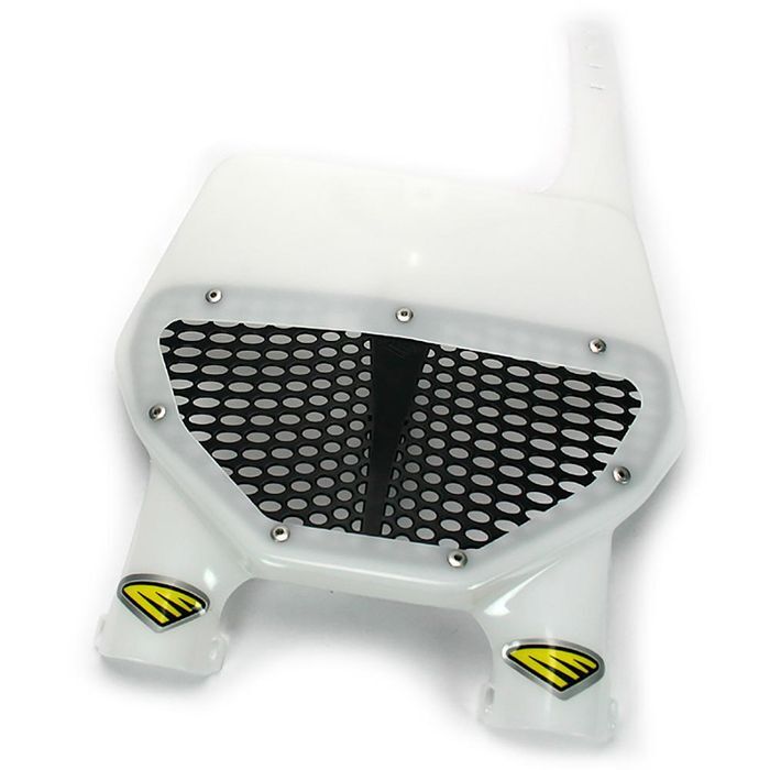 Cycra vented front number plates are designed for optimum airflow to radiators and oil coolers. A common mod for MX-modified trail bikes with steering stem-mounted oil coolers!