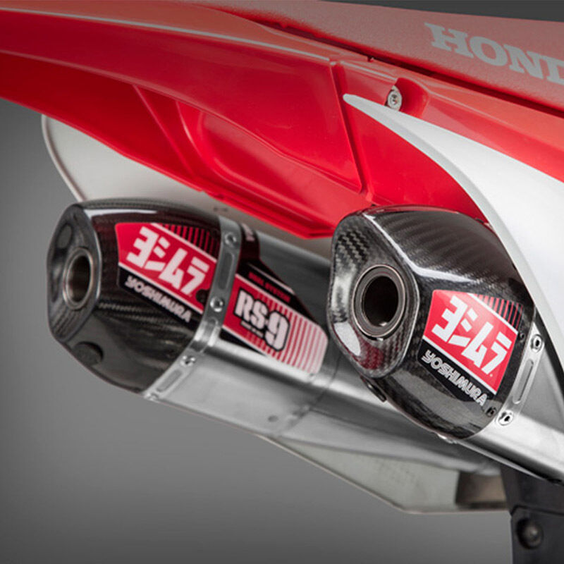 The CRF250R's new twin-cam engine and unique muffler configuration gave us the opportunity to create an entirely new system built specifically for the new dual port cylinder and its unique downdraft fuel injection system. We've developed our potent RS-9T Signature Series exhausts to provide more bottom end power and improved torque for the new high-revving engine. The distinctive dual header design is a brand new innovation from Honda. Deriving from Moto 3 bikes in Moto GP, Honda has found a new way to look at Motocross power delivery. Honing the power, engineers in Japan develop is what we at Yoshimura do, and we have found some great additions for the new CRF250R.