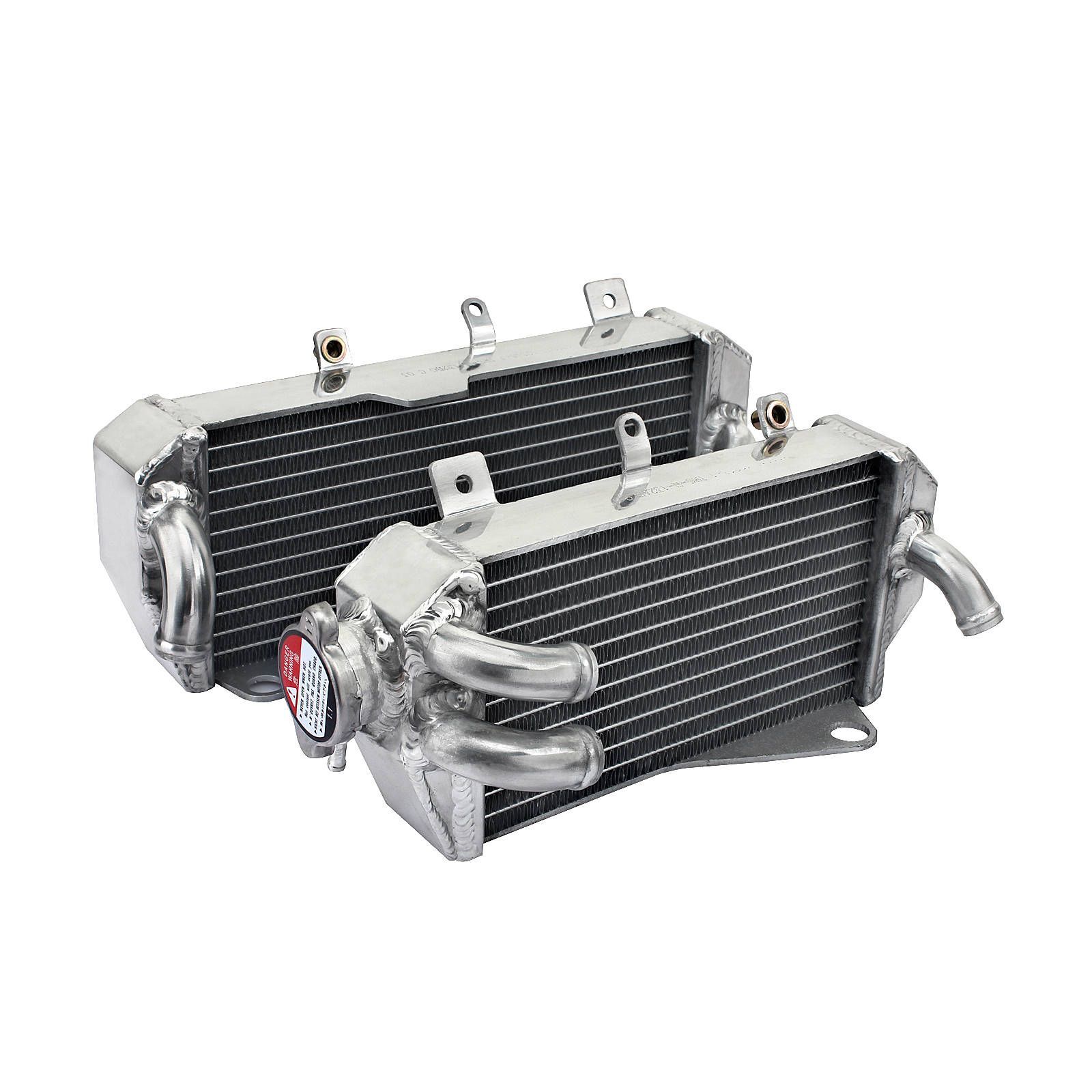Whites aluminium radiators make great replacements to your bent, cracked, and damaged radiators. Whites radiators offer exceptional cooling and maximum efficiency to ensure your machine's top performance. Based on the OEM specs, a hand-welded aluminium design offers both a great fit and styling. All cap side radiators will include a new radiator cap.