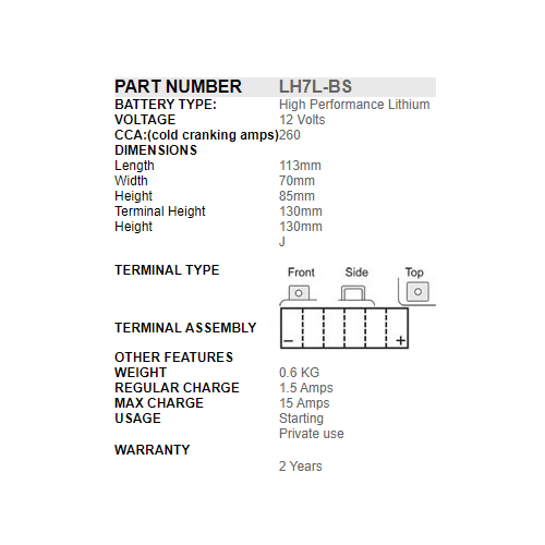 The SSB Powersport Lithium range (LiFePO4) are extremely lightweight battery designed for starting applications. They are completely dry batteries, making them spill-proof, and leak-proof.