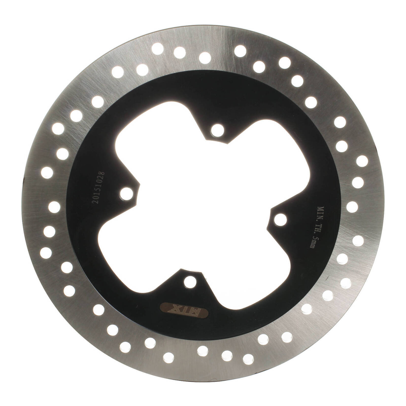 MTX solid discs are constructed using one complete segment of Japanese SUS 420 stainless steel then heat-treated to HRC 36+-2. Lightening and drill hole patterns are as per OEM designs to improve braking performance and reduce the temperature of the disc.