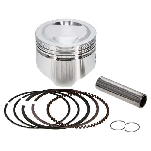 - 4-stroke kits feature a ‘race-ready’ dome finish with smooth edges for improved combustion flow. Horizontal slot-pin oiling reduces friction and provides scuff resistance, along with a pressure seal groove for maximum ring seal.