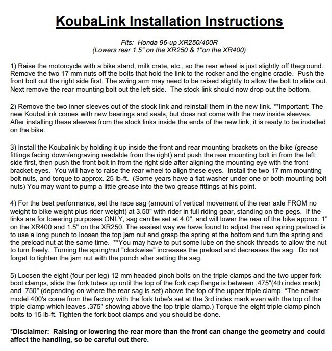 KoubaLink specialises in motorcycle lowering and performance linkages for off-road and dual-sport rear suspension systems. Compromise is not an option at KoubaLink. Listening to riders from all over the world explain where and how they use their off-road and dual-sport bikes. With their input, Koubalink manufacture products that add to your motorcycling experience and make it a little more enjoyable.