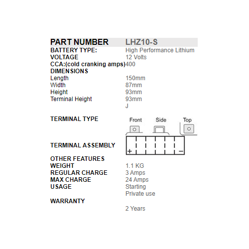 The SSB Powersport Lithium range (LiFePO4) are extremely lightweight battery designed for starting applications. They are completely dry batteries, making them spill-proof, and leak-proof.