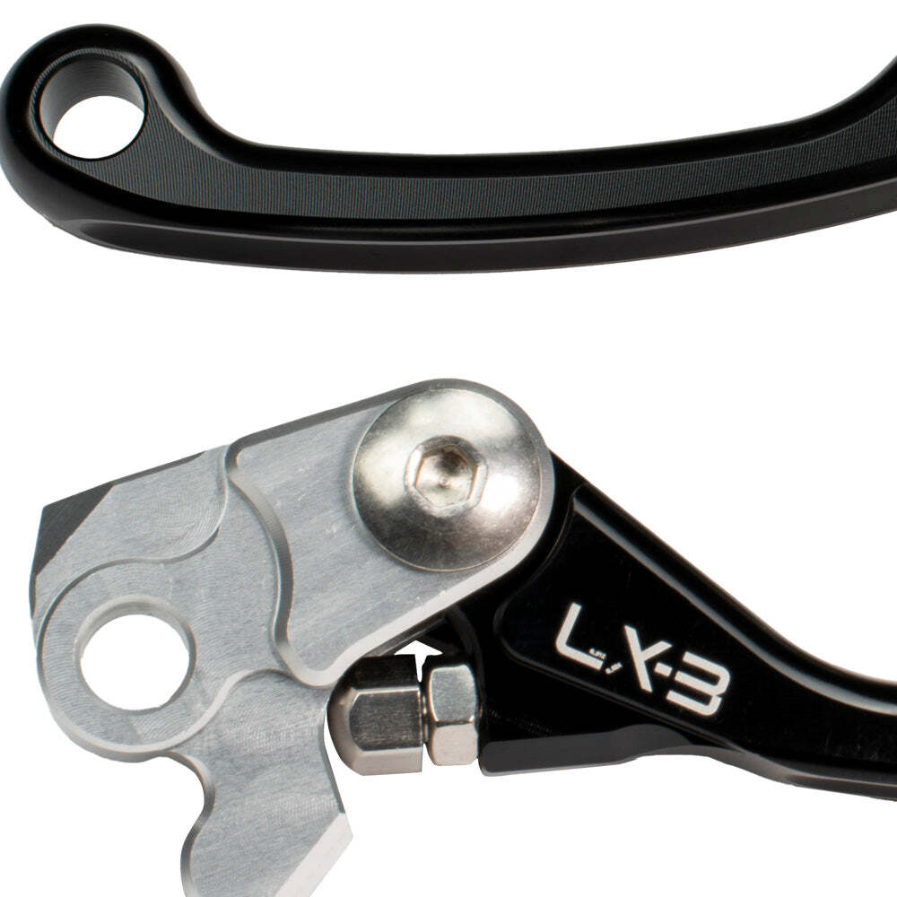 Axiom LX-3 Pivot Levers are essential, whether youÂ’re a Pro or just a weekend warrior. Developed with input from pro racers, the Axiom pivot lever is specially designed for motocross, supercross and off-road racing. The Ergonomic slim line shape of the lever makes it comfortable to grip, combined with easy pull reduces rider fatigue, allowing you to go harder for Longer! Crafted and CNC machined from 6061 Billet aluminum with flex folding design, you can run like the ProÂ’s and look like the ProÂ’s.