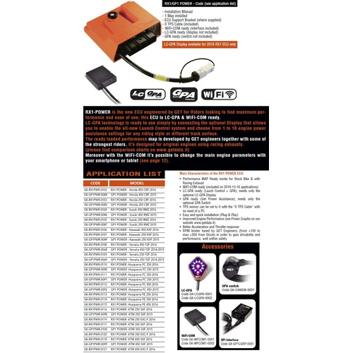 - Performance MAP already installed for Stock Bike & with Racing Exhaust and specially designed by GET engineers, together with some of the strongest off-road riders