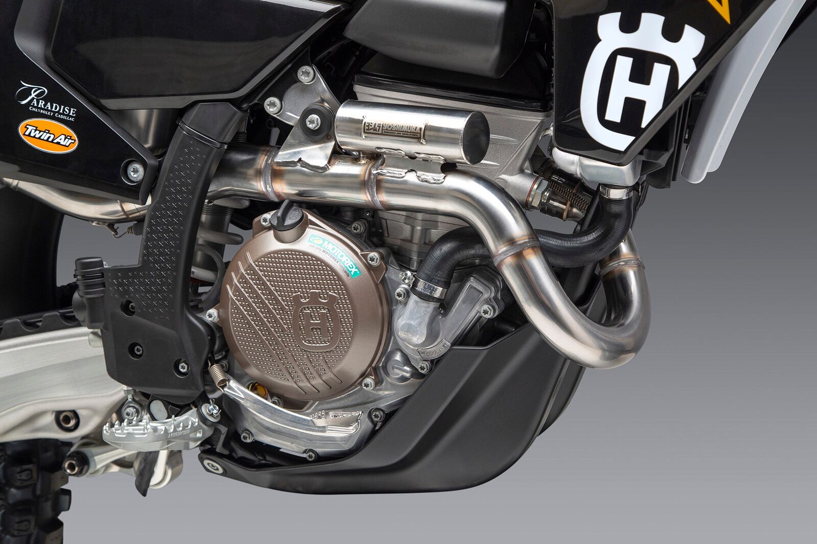 This system and the new one we just introduced for the Austrian 450 models are the first Yoshimura production motocross exhausts to incorporate a resonator on the header and in the muffler. This new header resonator unlocks bottom and midrange power to not only make the new Austrian bikes more powerful, but provides additional overrev.