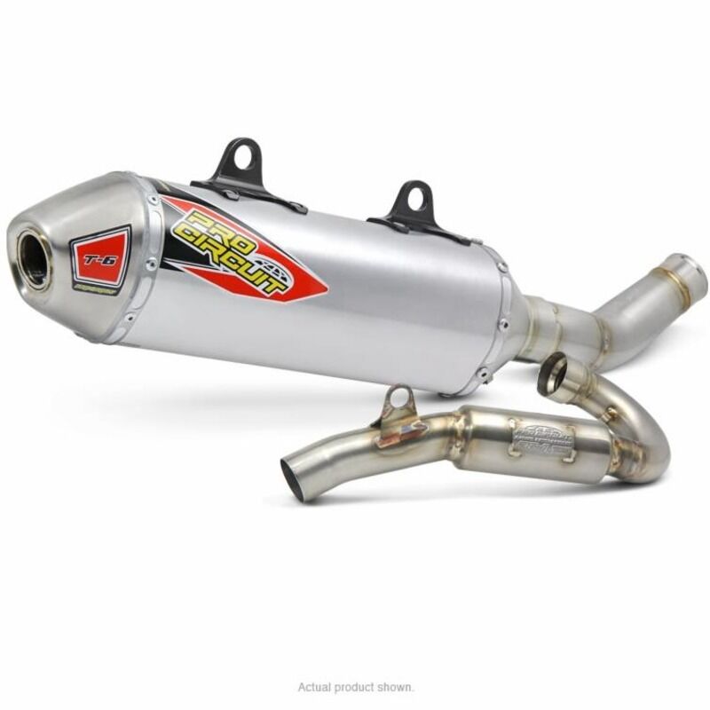 The T-6 Stainless Steel Exhaust System offers maximum performance and is constructed of stainless steel throughout the head pipe, mid pipe and end-cap while the canister is aluminum. The T-6 is perfect for any closed-course or off-road racer looking for improved performance, durability and a professional look. More features offered by the T-6 is the ability to meet AMA amateur racing sound requirements and that it comes equipped with a United States Forest Service (USFS) approved spark arrestor making it easy to alternate between off-road and closed-course racing.