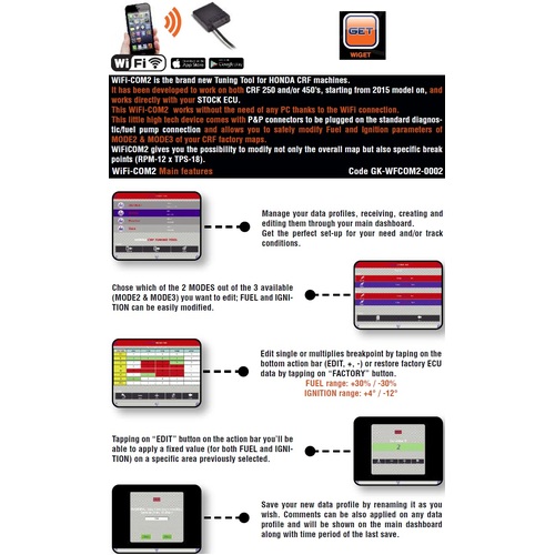 device to modify and adjust the main engine parameters on the map. Connect via WiFi