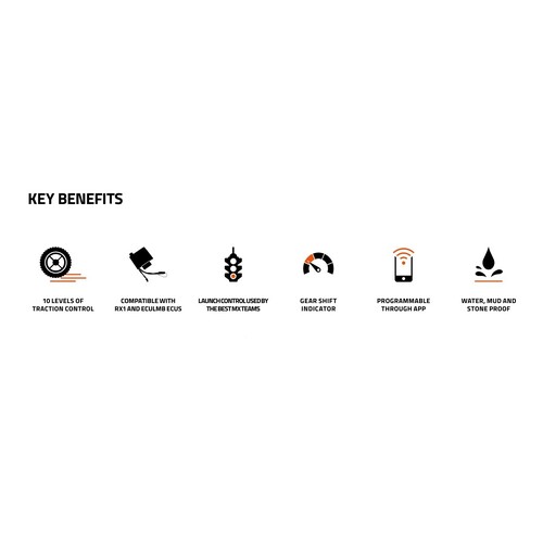 The device combines the GPA patented technology (“traction control”) with an extremely efficient Launch Control electronic strategy. Thanks to the twelve LEDs, the riders will always be able to understand the right RPM range to get out of the starting gate. For every specific bike, GET engineers have developed the best starting strategy in terms of ideal power delivery necessary until the very first corner. This tool also allows modulating in real-time up to 10 levels of our sophisticated GPA (GET Power Assistance) technology.