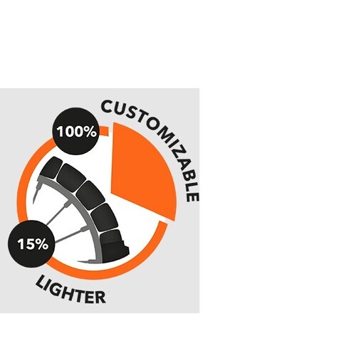 Thanks to the innovative and patented sector structure it will be possible to completely customize the wheel hardness according to the terrain condition and the rider preferences, without renounce the reliability and feeling of a mousse.