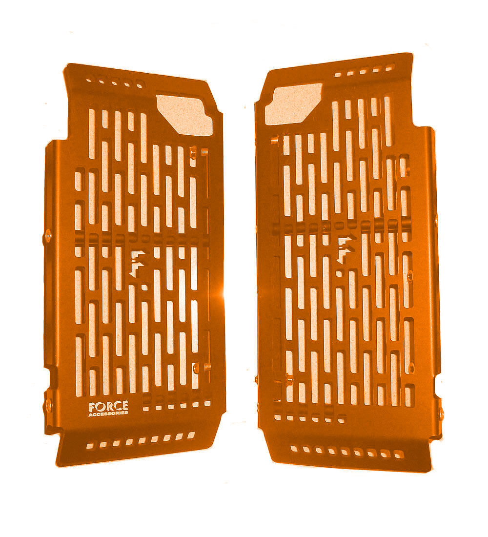 Force Accessories fabricated aluminium radiator guards are designed to deliver superior protection while ensuring minimal airflow restriction. Each guard features strategically placed tubes across the front for exceptional side impact resilience. Additionally, robust rear bracing is integrated into most designs to fortify both side impact resistance and fold-back durability. The Force Accessories grill design has undergone rigorous flow testing, demonstrating a reduction in linear airflow of less than 10% at lower speeds compared to the standard louver grill typically provided with most bikes.