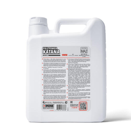 FULL POWER KATANA is a 100% synthetic ester-based and high-performance motor oil for 4 Stroke motorcycles, intended for sporty riding on the road.