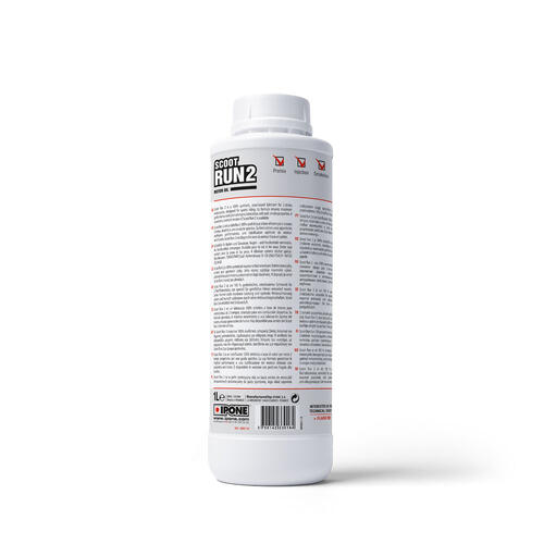SCOOT RUN 2 is a 100% synthetic ester-based motor oil for 2-stroke scooters. Its formulation provides the best performance and optimal engine lubrication. Suitable for both premix and oil injection applications.