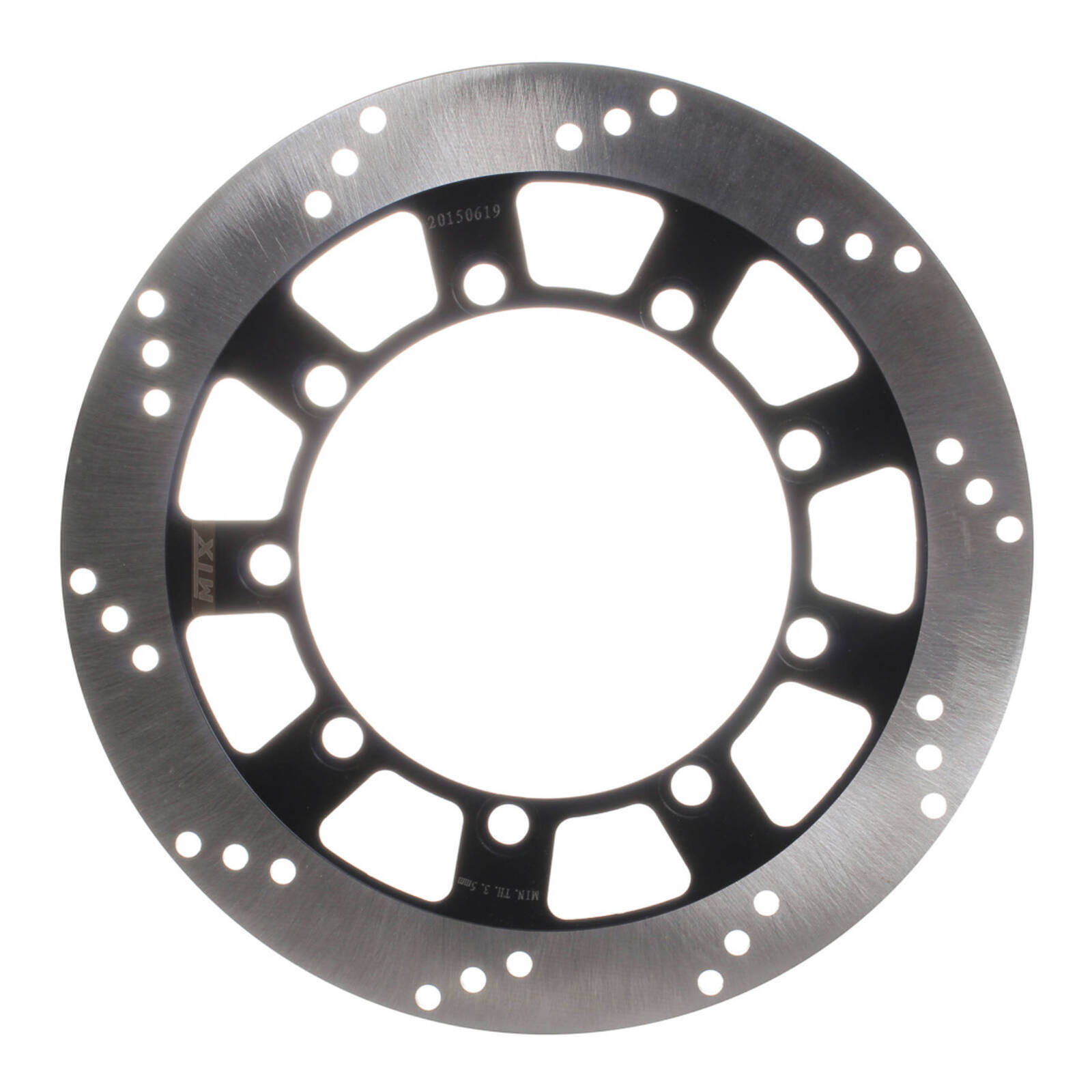 MTX solid discs are constructed using one complete segment of Japanese SUS 420 stainless steel then heat-treated to HRC 36+-2. Lightening and drill hole patterns are as per OEM designs to improve braking performance and reduce the temperature of the disc.