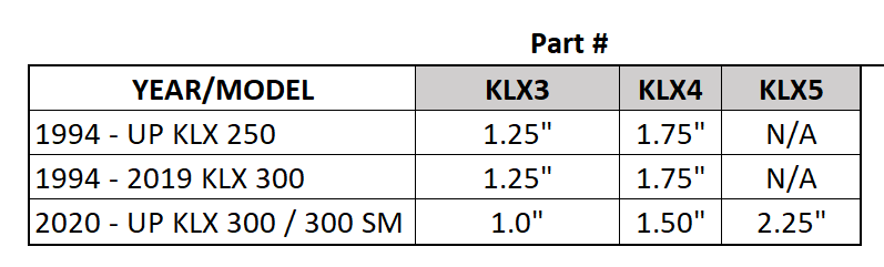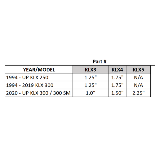 - Lowering amounts indicate REAR lowering, NOT overall bike height.