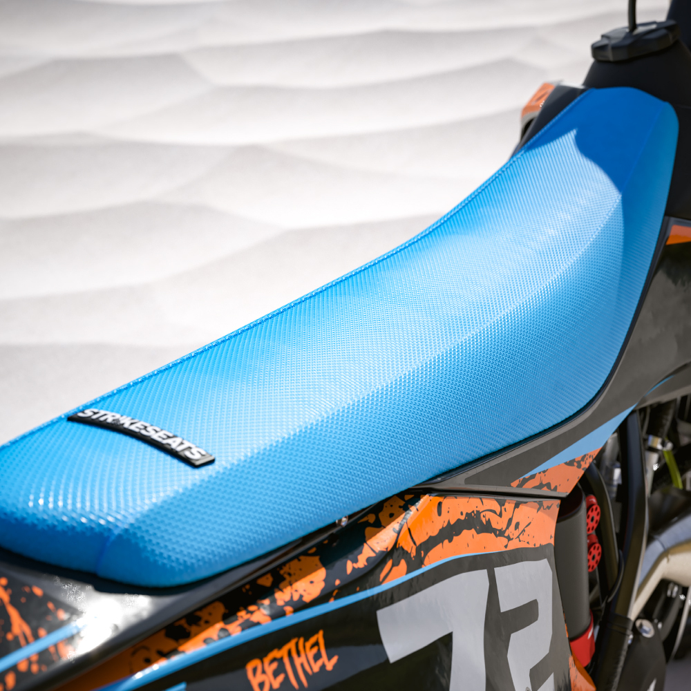 Strike Seats gripper seat covers are designed and manufactured to combine performance and style. Gripper seat covers contain complete gripper material coverage for total bike control. Every seat cover is made to fit your specific bike, model and year.