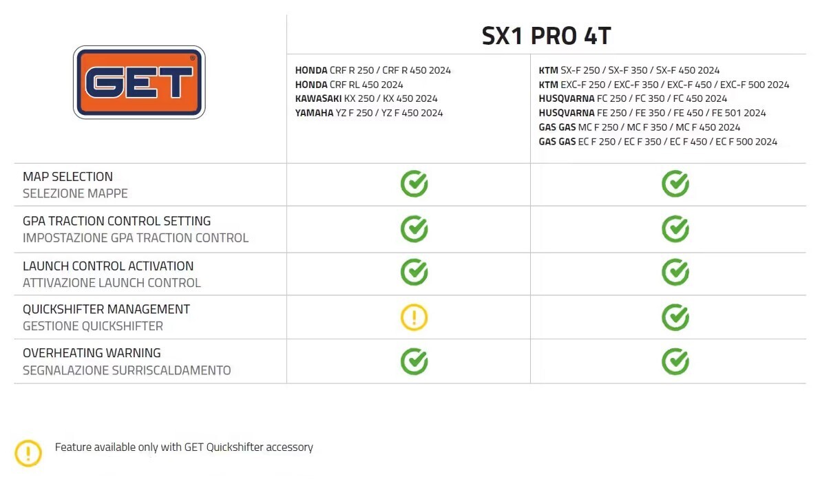 GET PERFORMANCE MOTORCYCLE SX1 PRO ECU UNIT CONTROLLER - SUITS 4 STROKE