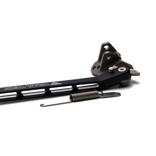Custom designed side stands for both Enduro and MX style motorcycles made for exact model fitment. Strong, lightweight, and attractive. The ultra-high strength chromoly mounting bracket bolts directly to bike frame with a precision side stand made from light-weight high-strength forged aluminium coated with extra tough black ceramic and aluminium reinforced high impact nylon foot at the base of the stand. Go ahead - stand on the bike and kick it Trail Tech kickstands are guaranteed to hold up to the riders’ weight. Installs in 10 minutes with no modifications required and tucks out of the way of the rider.