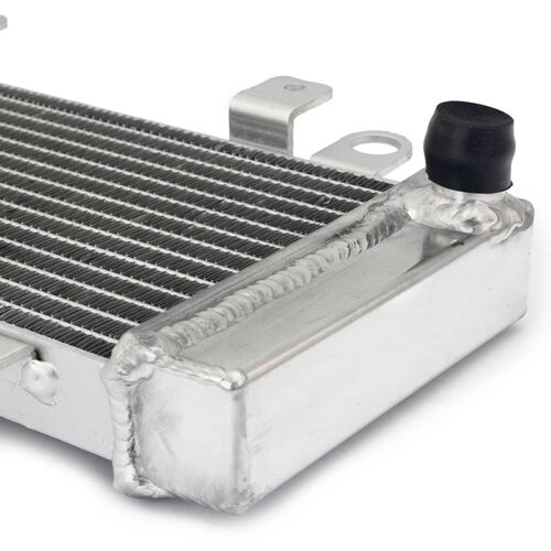 Whites aluminium radiators make great replacements to your bent, cracked, and damaged radiators. Whites radiators offer exceptional cooling and maximum efficiency to ensure your machine's top performance. Based on the OEM specs, a hand-welded aluminium design offers both a great fit and styling. All cap side radiators will include a new radiator cap.
