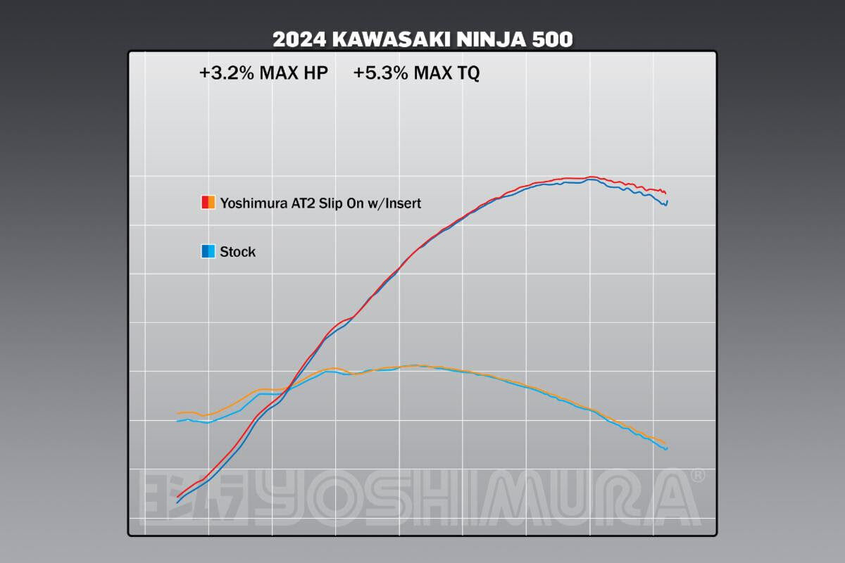The AT2 slip-on with carbon fiber heel guard delivers a perfect balance of style, power, weight reduction, and a deep, throaty exhaust note. Offering a max HP boost of 3.2% and torque increase of max 5.3% the AT2 packs a nice performance increase over stock. A 3.3 pound loss of weight over the stock unit lightens up unsprung weight with an incredible exhaust note that can only be Yoshimura.