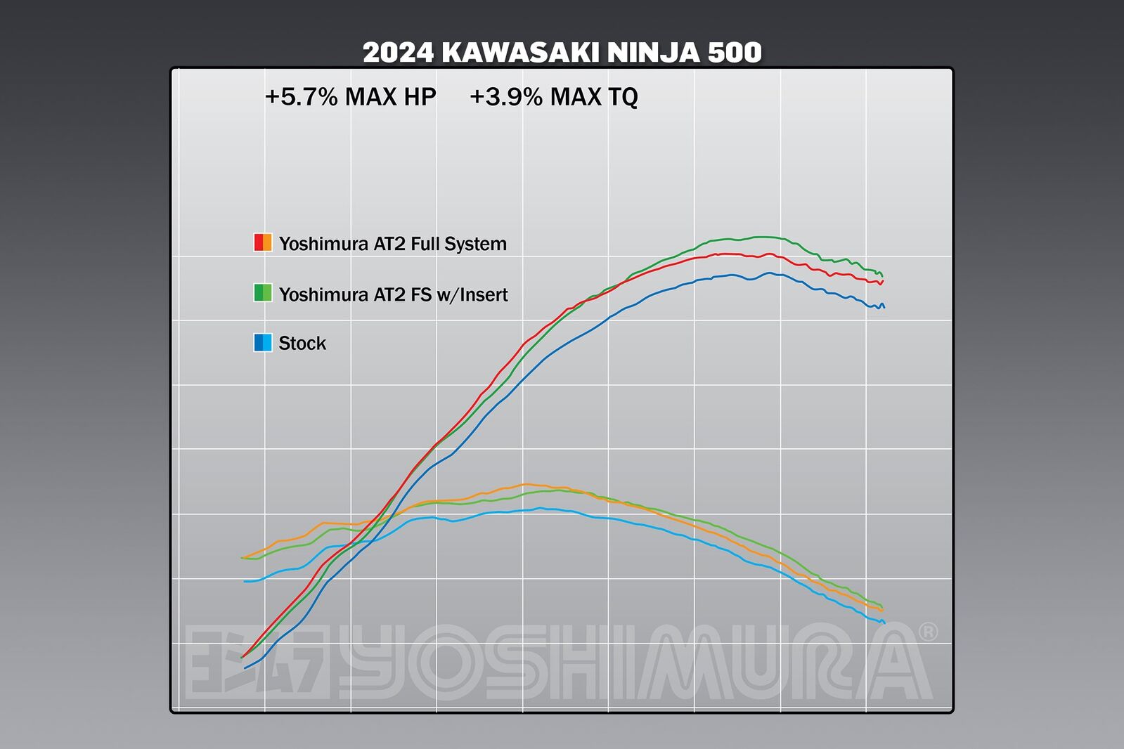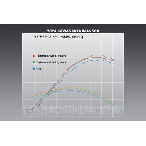 The new 451cc twin cylinder engine of the Ninja 500 challenged our development team to add power and torque, and that they did! Our AT2 responded with 5.7% increase in max hp and 6.1% increase in max torque! That along with loosing 6.3 pounds of weight from the stock system will make any track day rider rejoice!