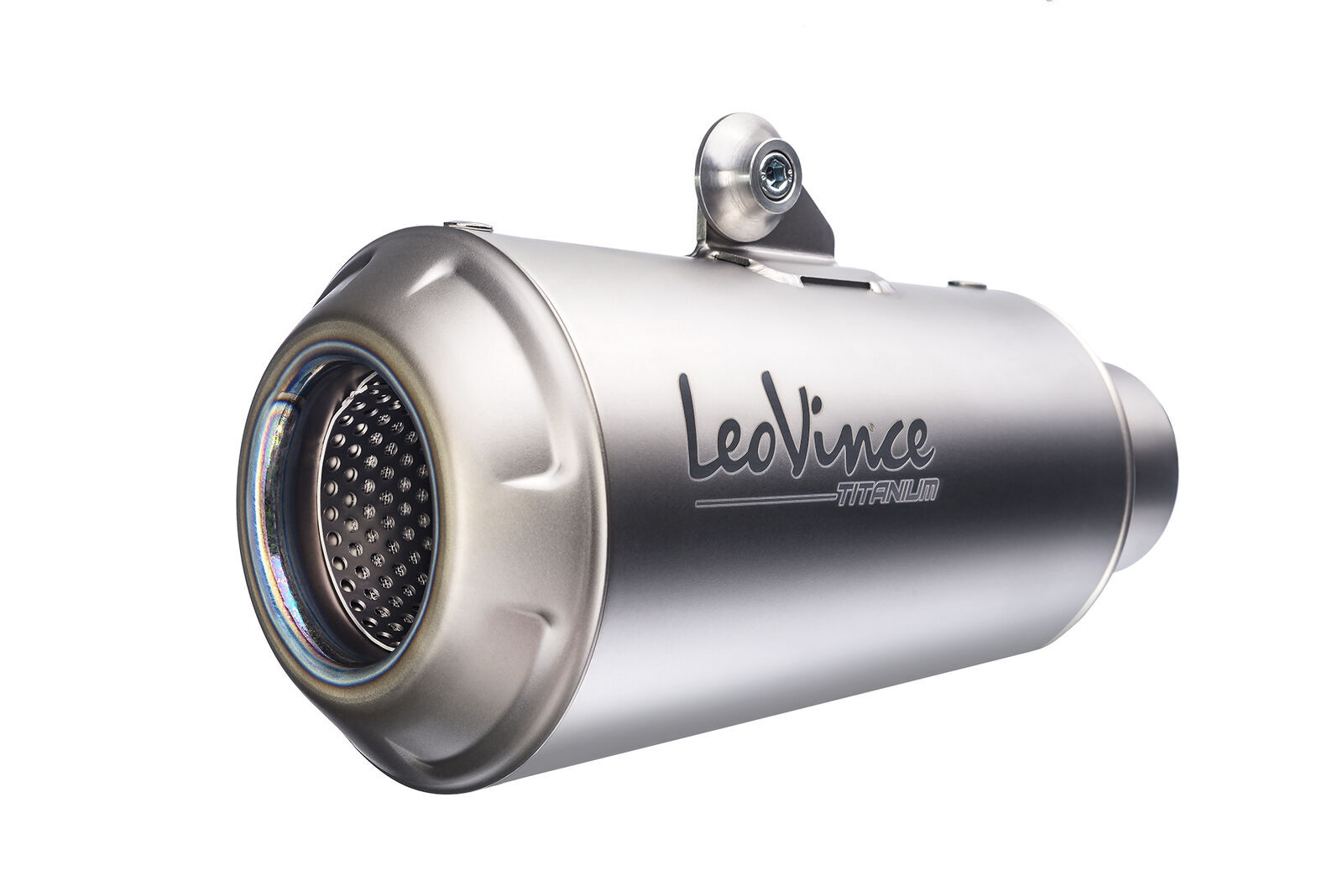 Developed with Moto2 / Moto3 teams!Entirely made from Grade 1 TitaniumRoughly 30% lighter than a Stainless versionShot blasted Titanium end capSuper Compact design with conical shapeLaser cut bracketLaser etched LeoVince logoTIG welded by handHigh quality thermal resistant Fiberglass packing