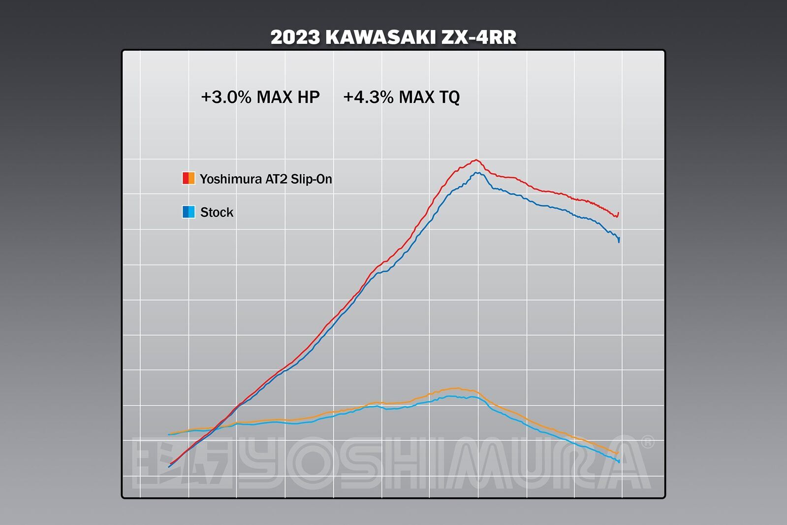 The sound of this inline four at 16,000 rpms with our AT2 is simply something that must be experienced in real life. True music! Finally, the styling of the AT2 can't be beat. It's now iconic matte carbon fiber end cap and heat shield compliment the lines of the ZX-4RR to perfection.