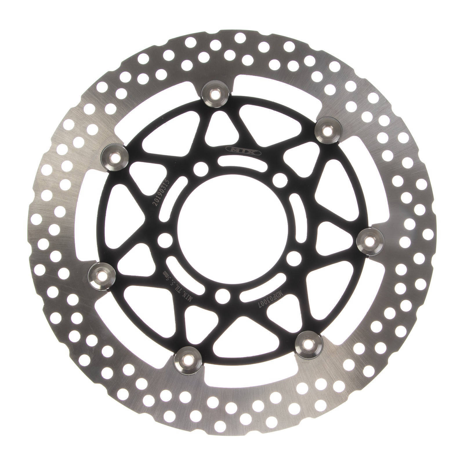 MTX floating discs are made from two segments of stainless steel which are riveted together to allow the outer section of stainless steel to expand under extreme temperatures. The outer section is manufactured from Japanese SUS 420 stainless steel then heat-treated to HRC 36+-2 while the centre of the disc is manufactured from steel or alloy. An alternative to large original discs floating discs improve braking performance by ensuring the disc is always in perfect alignment with your pads for the perfect contact throughout all operating temperatures. Lightening and drill holes are designed to improve braking performance and reduce the disc temperature.