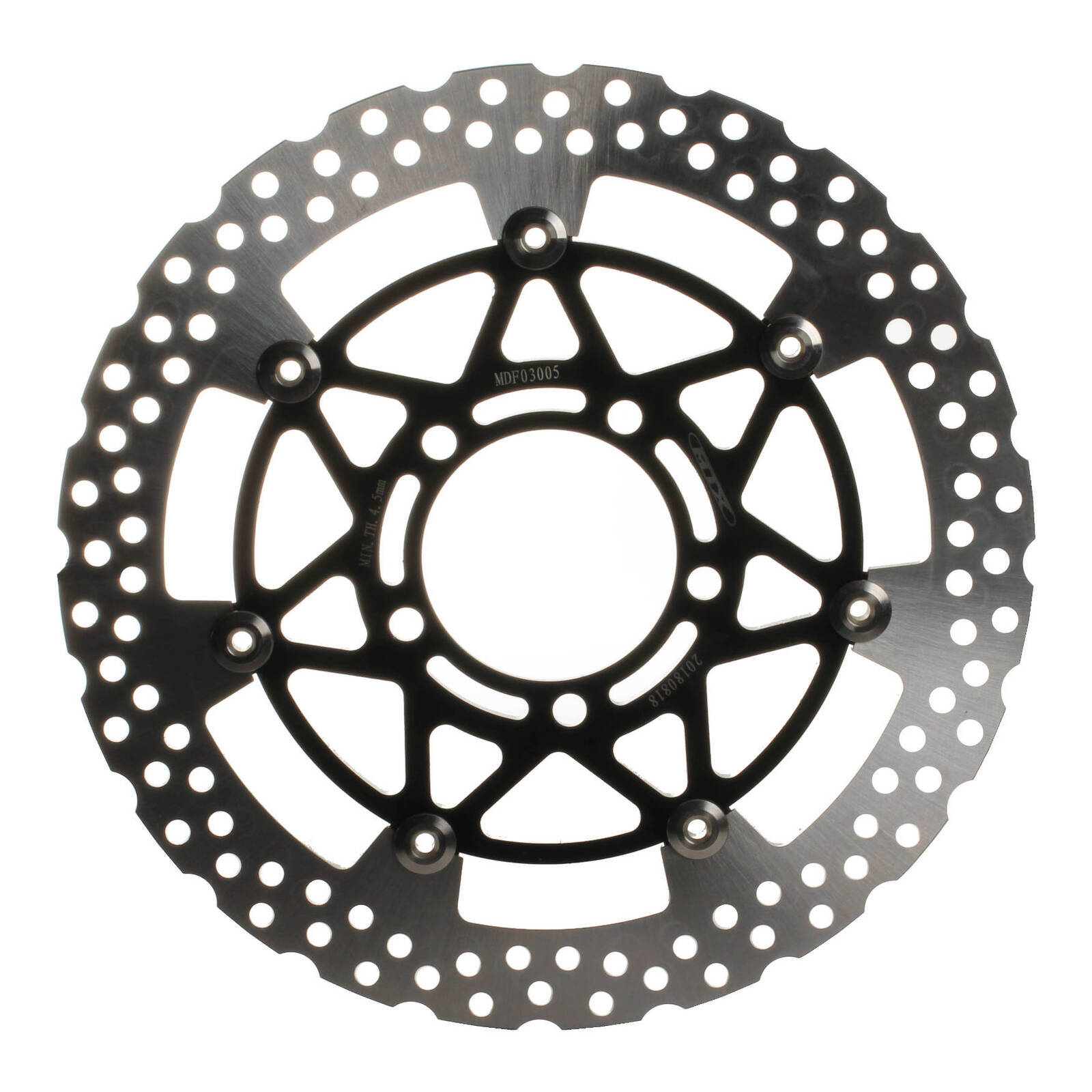 MTX floating discs are made from two segments of stainless steel which are riveted together to allow the outer section of stainless steel to expand under extreme temperatures. The outer section is manufactured from Japanese SUS 420 stainless steel then heat-treated to HRC 36+-2 while the centre of the disc is manufactured from steel or alloy. An alternative to large original discs floating discs improve braking performance by ensuring the disc is always in perfect alignment with your pads for the perfect contact throughout all operating temperatures. Lightening and drill holes are designed to improve braking performance and reduce the disc temperature.