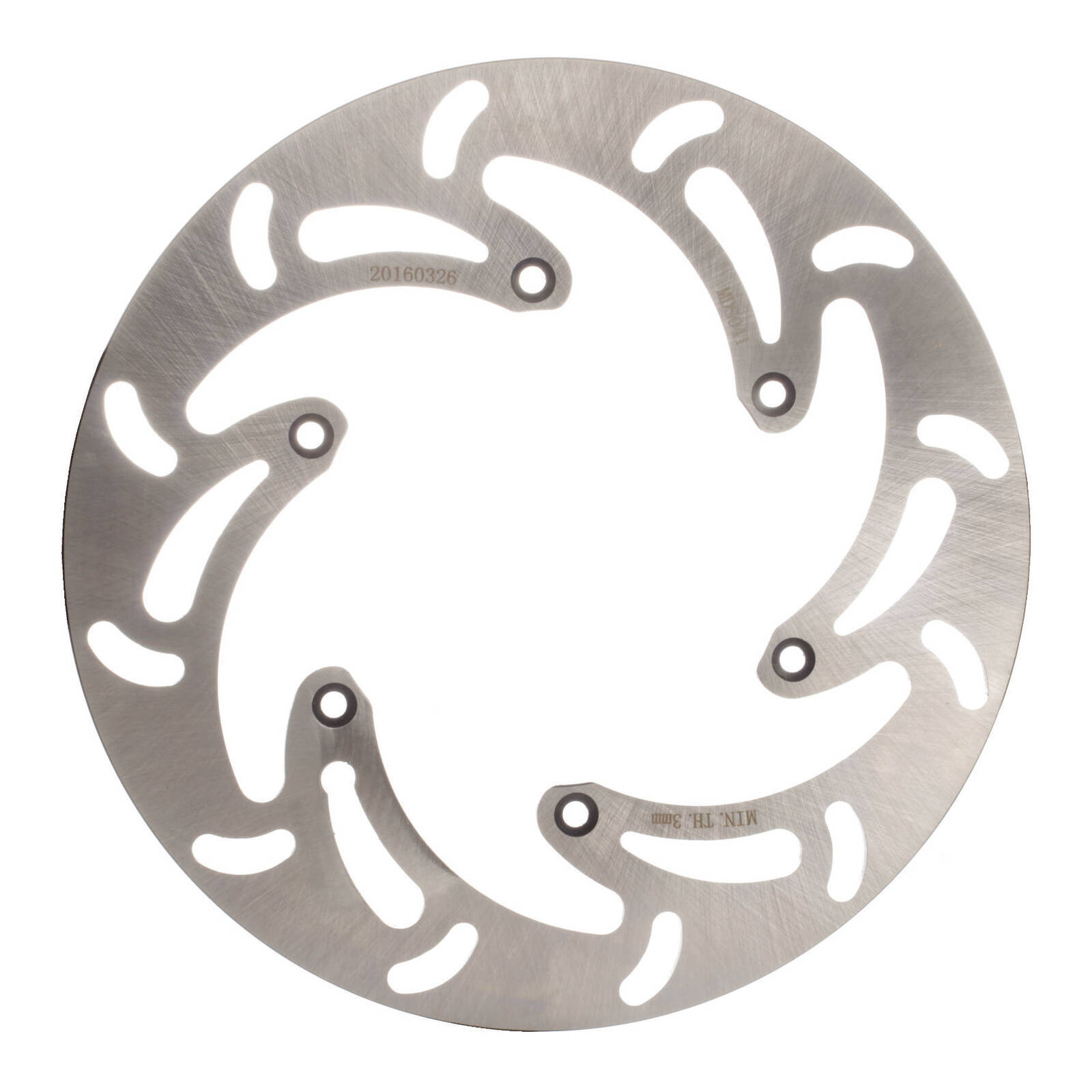 MTX solid discs are constructed using one complete segment of Japanese SUS 420 stainless steel then heat-treated to HRC 36+-2. Lightening and drill hole patterns are as per OEM designs to improve braking performance and reduce the temperature of the disc.