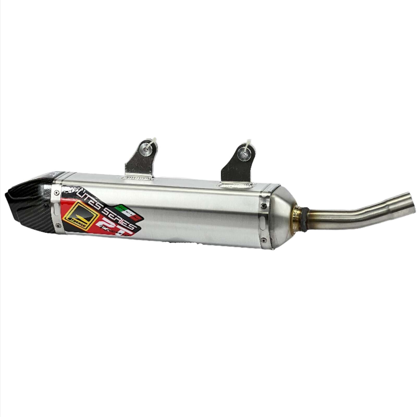 All expansion chambers are made of variable thickness steel sheet. This feature provides greater protection in the most exposed parts to damage and provides superior power delivery. All Fresco 2 stroke exhaust systems are dyno and track tested for optimum performance gains over your OEM system.