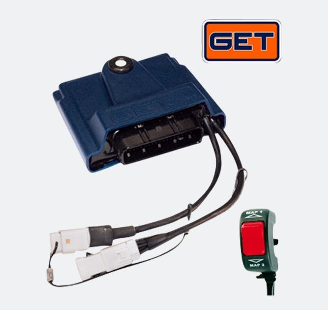 A rider can easily adjust many of the GET GP1-Evo ECUs settings The rider can also switch between 2 maps during the race using the handlebar mounted map switch. Typically you would have a dry setting or wet setting or maybe overtake mode (slightly higher rev limit) Another unique function is LC-GPA (Launch Control GET Power Assistance) System This allows you to manage your engines power output to match the terrain and conditions of the current track Can be adjusted to 10 different levels via the mode switch effectively.