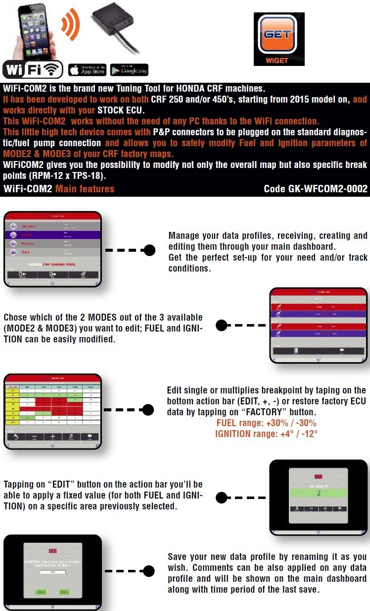 device to modify and adjust the main engine parameters on the map. Connect via WiFi