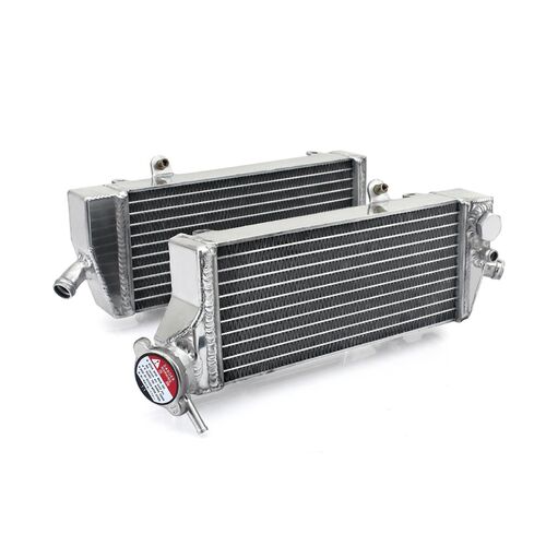 Whites aluminium radiators make great replacements to your bent, cracked, and damaged radiators. Whites radiators offer exceptional cooling and maximum efficiency to ensure your machine's top performance. Based on the OEM specs, a hand-welded aluminium design offers both a great fit and styling. All cap side radiators will include a new radiator cap.