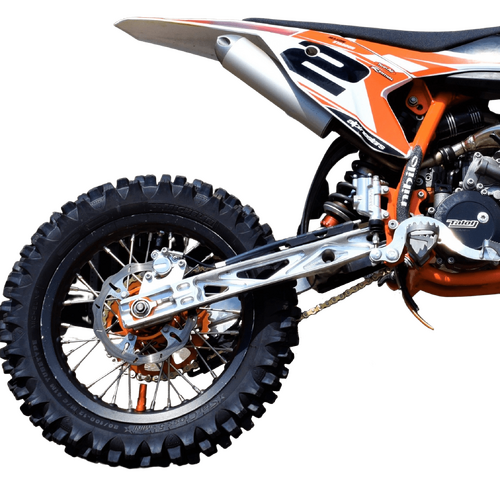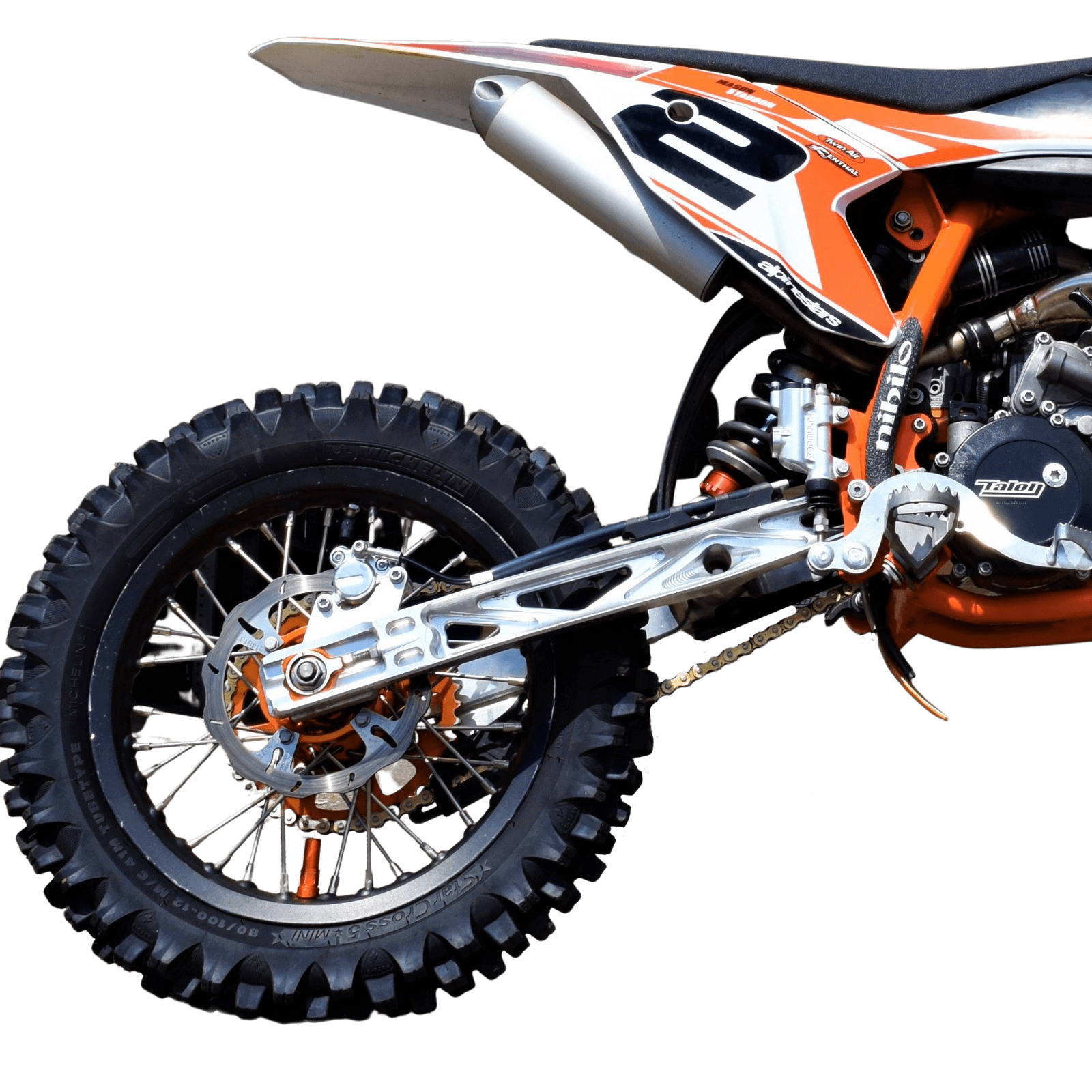 - Increased compliance of the swingarm allows for a more confidence-inspiring feel so that youngsters can push the limits harder through rough sections and have better control during hard landings.