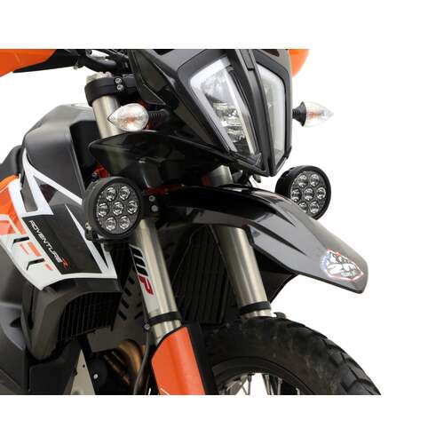 This vehicle specific driving light mount allows you to mount any DENALI driving light in the optimum location on your motorcycle. This kit includes beefy powder coated steel brackets with and M8 mounting hole and all necessary mounting hardware.